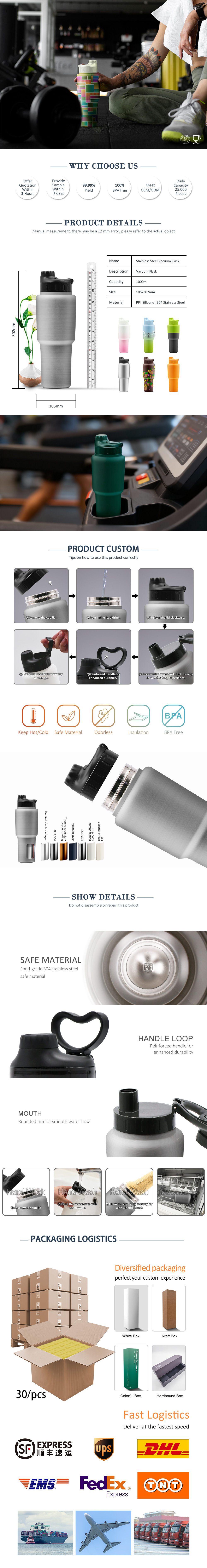 Source factory 1000ml large-capacity outdoor sports 304 stainless steel lead-free vacuum water bottle