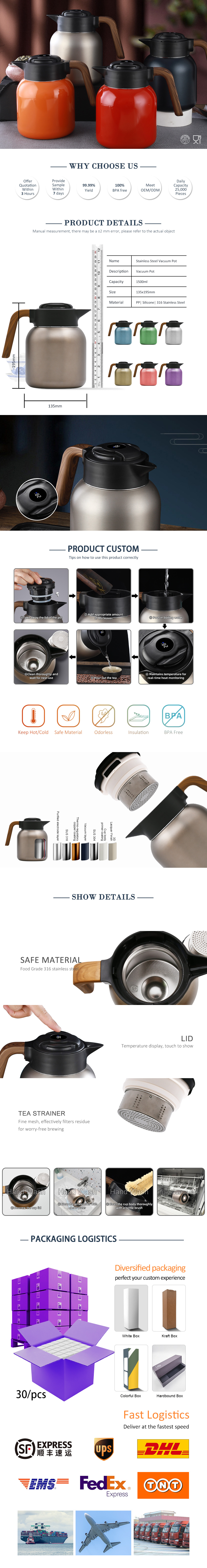 1500mL digital smart temp display, minimalist Aesthetic round teapot
