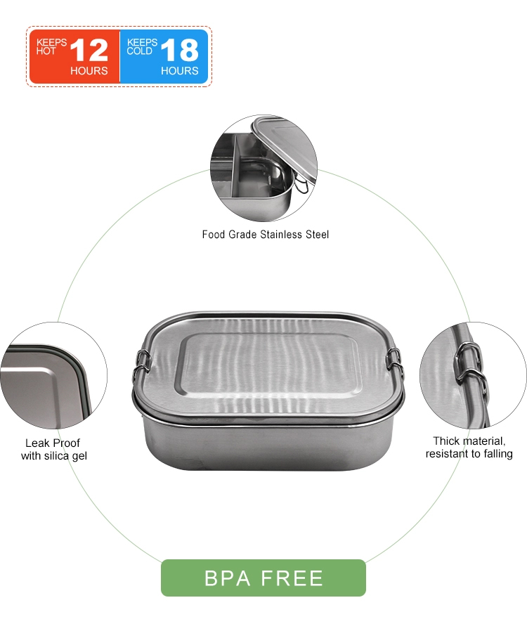 Large Stainless Steel Lunch Box Metal Bento Box Food Container with Lock Clips