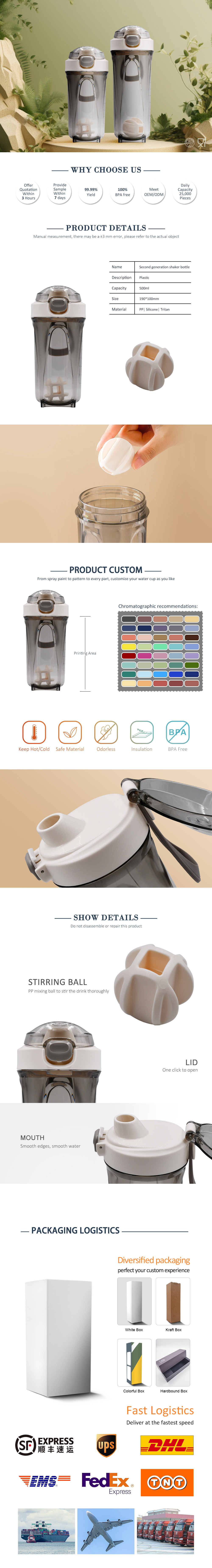 500ml/17oz second generation outdoor sports plastic shaker bottle