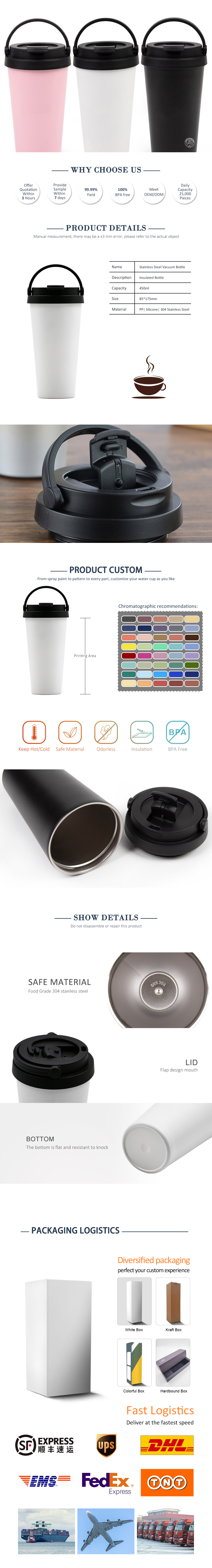 450ml/15oz double-layer 304 stainless steel portable insulated coffee cup