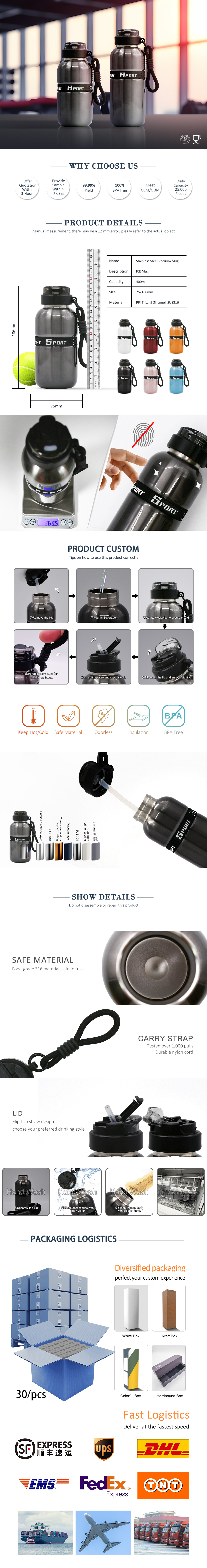2025 Fashionable 400ml Portable Sports Water Bottle with Carry Strap
