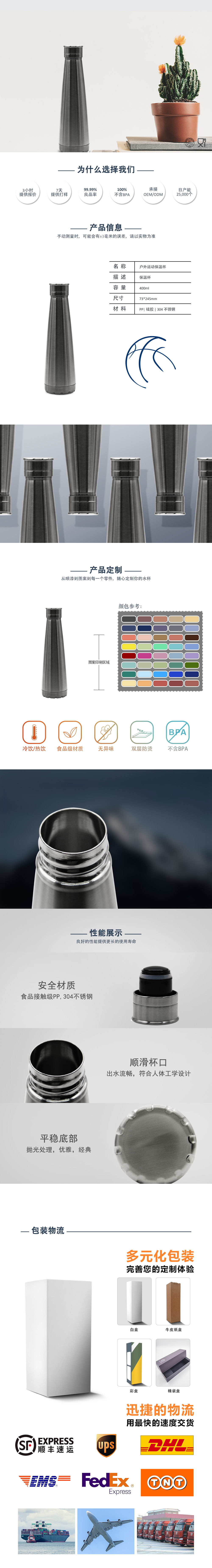 定制商标印花真空隔热不锈钢水瓶