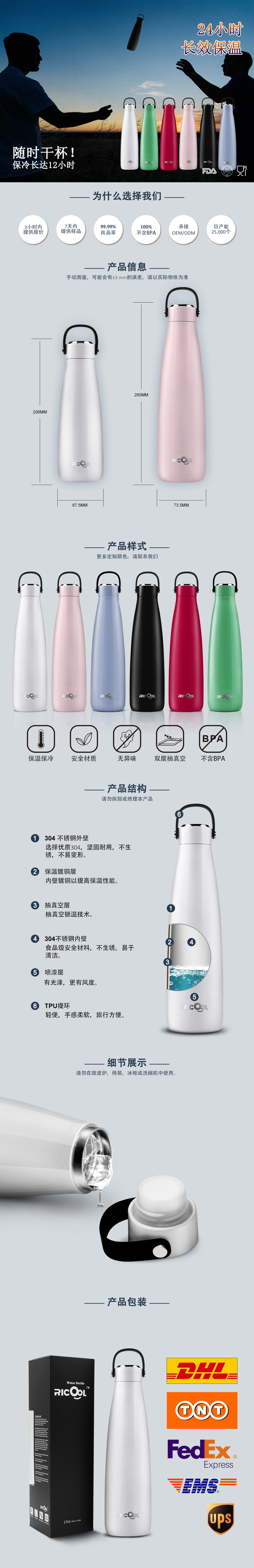 材质PP, 硅胶, TPU, 18/8不锈钢