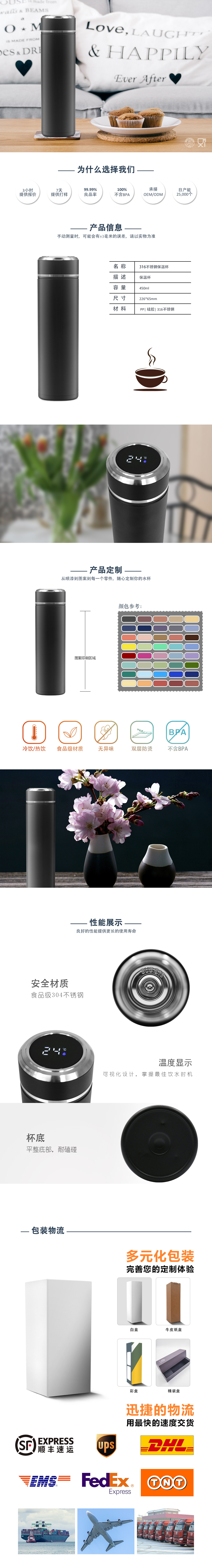 新型智能LED数字温度显示双壁不锈钢保温瓶