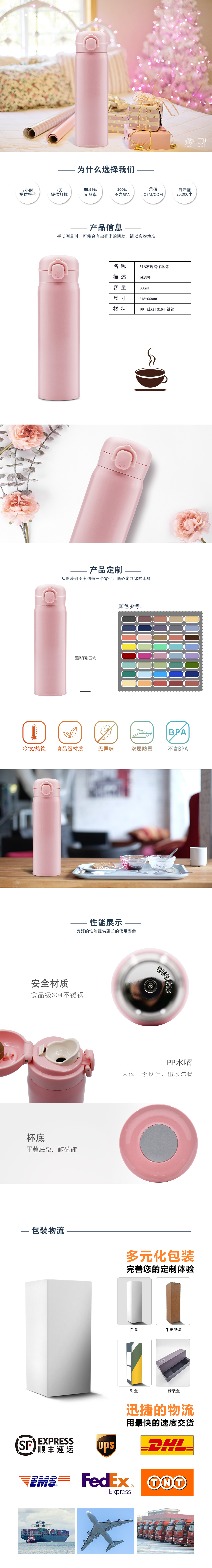 真空杯带按钮杯盖定制不锈钢咖啡保温杯